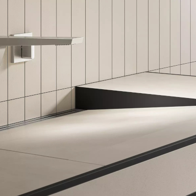 Profile odwadniające KERDI-LINE-VARIO dopasowane do kształtu umywalki należy zamawiać oddzielnie. Można je przycinać na dowolną długość, mają regulowaną wysokość i są dostępne w szerokiej gamie kolorystycznej – patrz Schlüter-KERDI-LINE-VARIO.